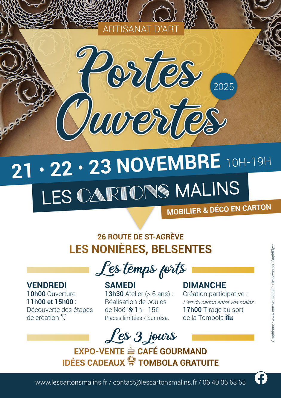Toutes les réalisations sont fabriquées artisanalement dans mon atelier-boutique ardéchois “Les Cartons Malins” situé en Ardèche Hautes Vallées à Belsentes - Les Nonières.